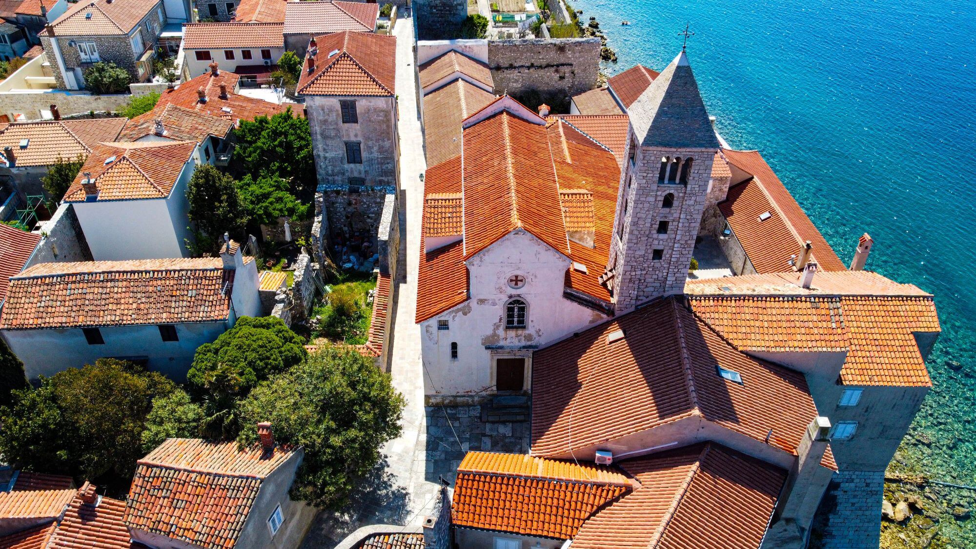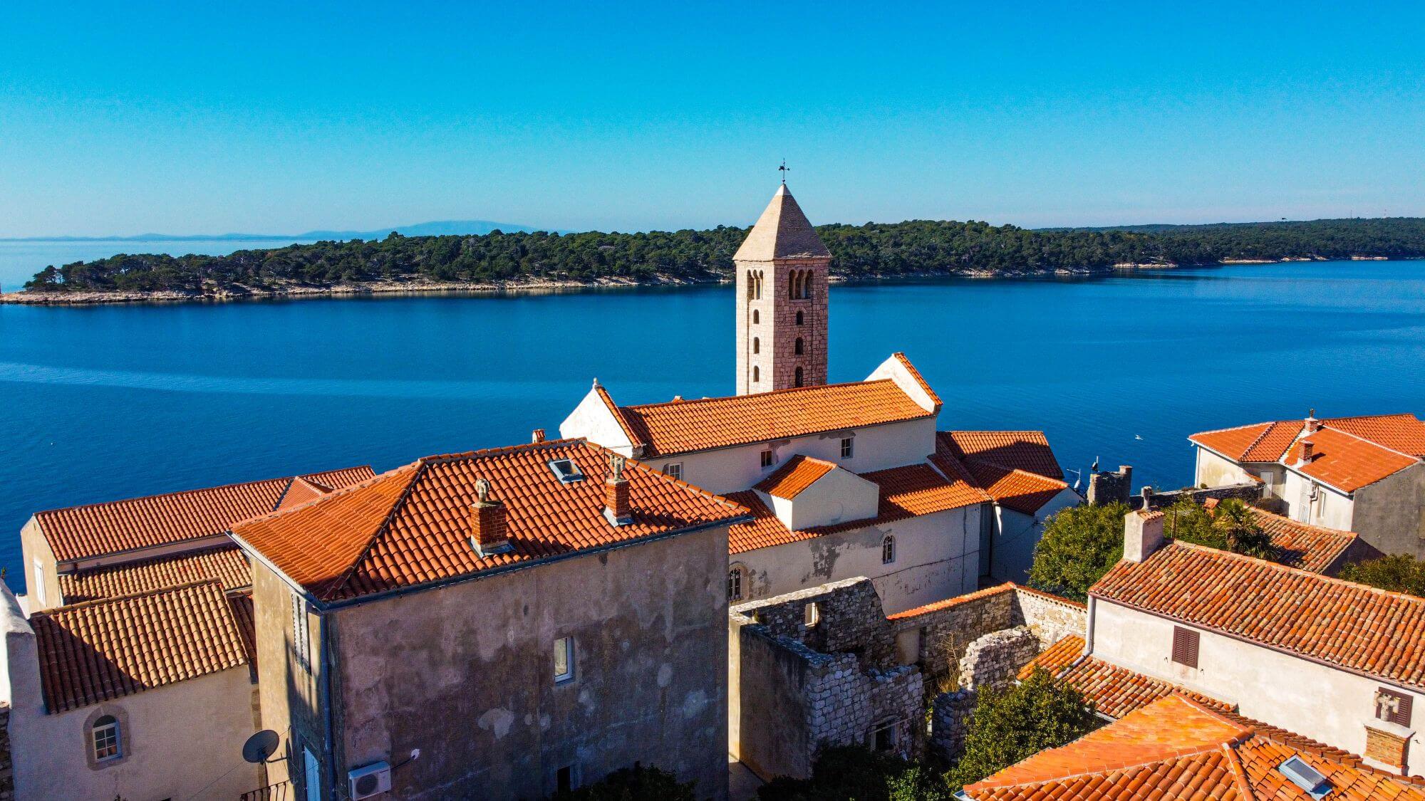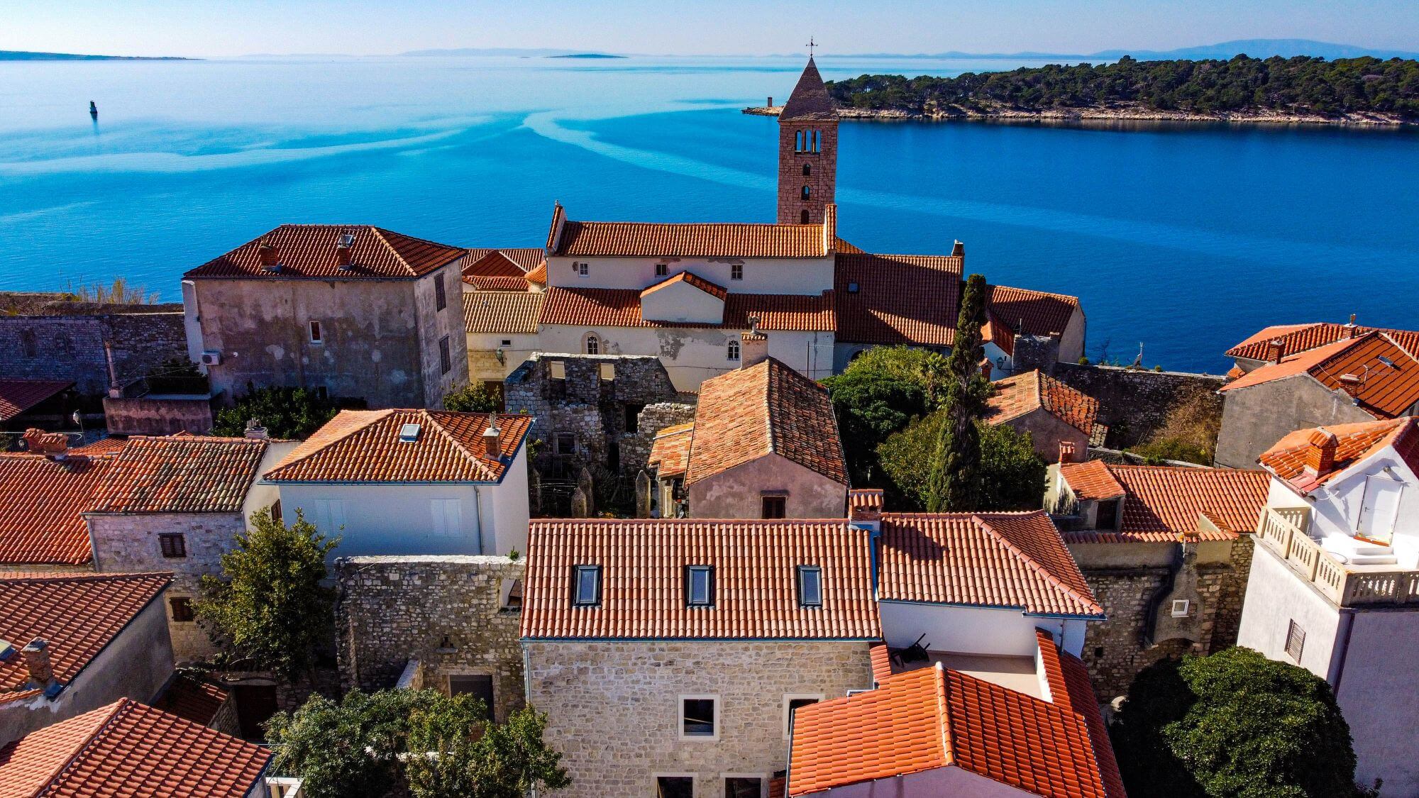 The Monastic church of St. Andrew was built before the monastery around the mid 11th century, indicated by its architectural features. It is a time when the early Christian architectural traditions came to life. The church is divided by four pairs of columns and five arches in three naves and three protruding semi-circular apses. Recent research has shown a high degree of preservation of the original parts of the church. Stone colonnade columns supported by profiled bases and the stone panels of the original floor that was some 20cm lower have been preserved. Two pairs of capital pillars are decorated with stylised palm leaves, emphasising the approach to the interior, and the three remaining pairs are decorated with acanthus leaves. The four arches between the pillars have been preserved, with the first pair being demolished due to the construction of the Late Baroque choir area above the entrance to the church. On the inner face of the facade wall and the walls among shrine apses, the imposts used to support the arches were found. Several fragments of the pre-Romanesque furniture were found inside the church and the monastery, with the column and the capital showing the birds belonging to the canopy above the altar (Lat. ciborium) being particularly impressive. In the course of history, the church was reconstructed several times, but has retained the appearance of the three-nave proto-Romanesque basilica. The last major reconstruction took place in 1765, when the interior of the church was decorated in Baroque style using ceiling mirrors and plaster (stucco) molding on the columns, bases and capitals.The choir area was built at that time and all the new altars, with the main one being the most significant, representing the greatest wood carving Baroque style creation on the Island of Rab. Above the altar, in the reconstructed northern apse, the valuable Late Renaissance wooden crucifix was found. Originally, there was a winged altarpiece made by Bartolomeo Vivarini in 1485 on the opposite northern altar, with a faithfully portrayed Virgin Mary holding the Child in the middle of the altarpiece. At the end of the previous century it was sold in the USA and is now located at the Art Gallery in Boston, with the original one being replaced by a reproduction.