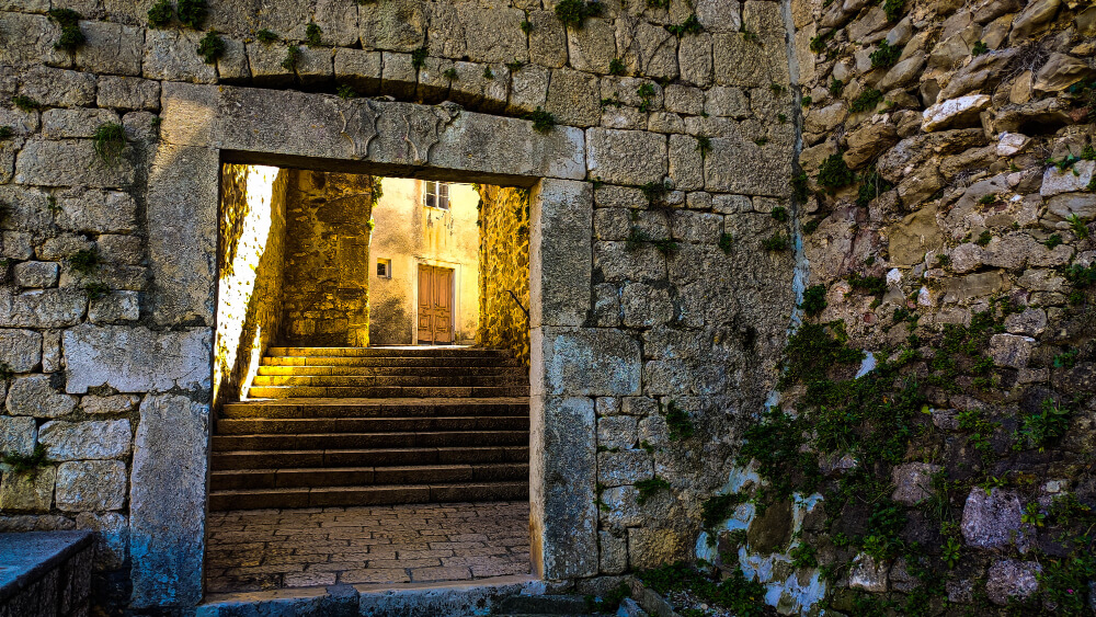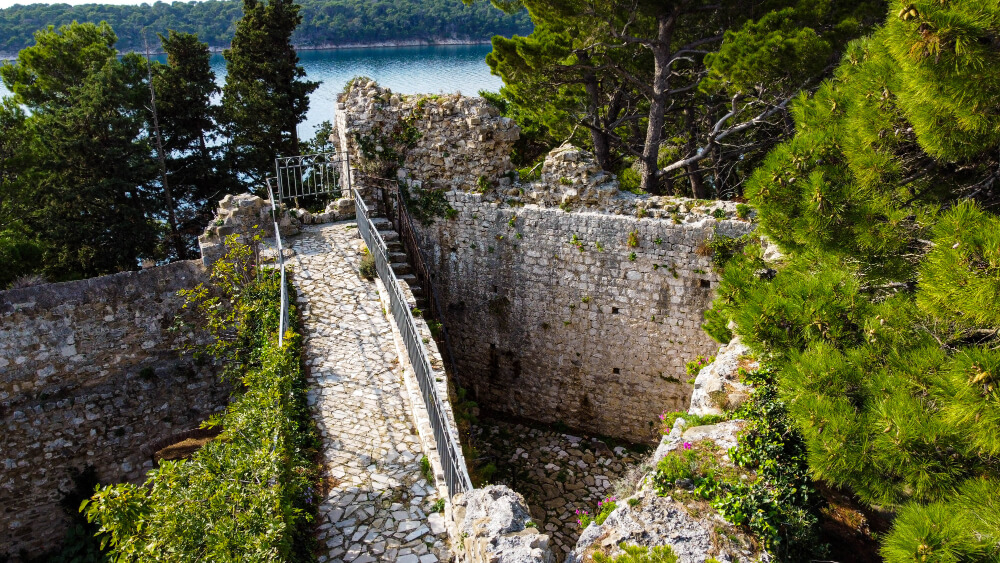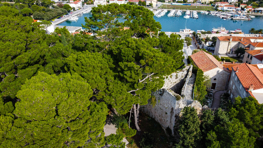 The best-preserved walls are located on the mainland and two new towers were built in the 15th c., such as the St. Christopher (Sv. Kristofor) and the Gagliarda Tower (Cro. Kula Smjelih). In between these two towers the defence double gate was built, called the propugnaculum.