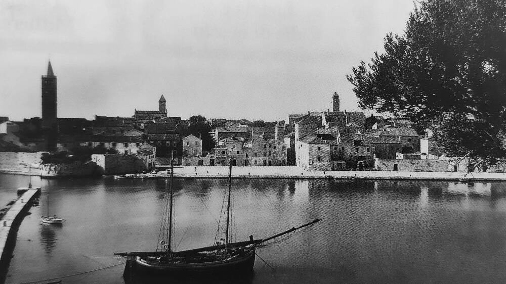 Najbolje sačuvani potez bedema nalazi se na strani prema kopnu, gdje su početkom 20. st. porušene dvije kule i donja gradska vrata. Pod kulom Sv. Kristofora, spojena snažnom kortinom, nalazi se Kula smjelih (Gagliarda) s dvovraćem u sredini. Ovakav Grad je vjerno, gotovo geodetski, prikazan na slici s početka 17. st. koja se čuva u muzeju sakralne umjetnosti u crkvi Sv. Justine. Na slici se nalaze samo tri romanička zvonika jer je četvrti onaj na crkvi Sv. Justine izgrađen tek 1672. godine u skromnim baroknim oblicima. Njegovim dovršetkom zaokružena je slika grada Raba s četiri zvonika po kojoj je prepoznatljiv u svijetu.