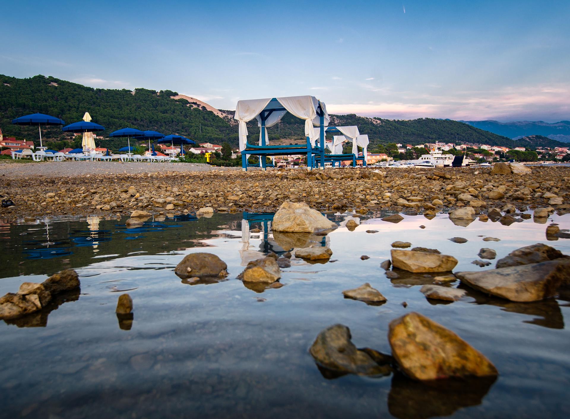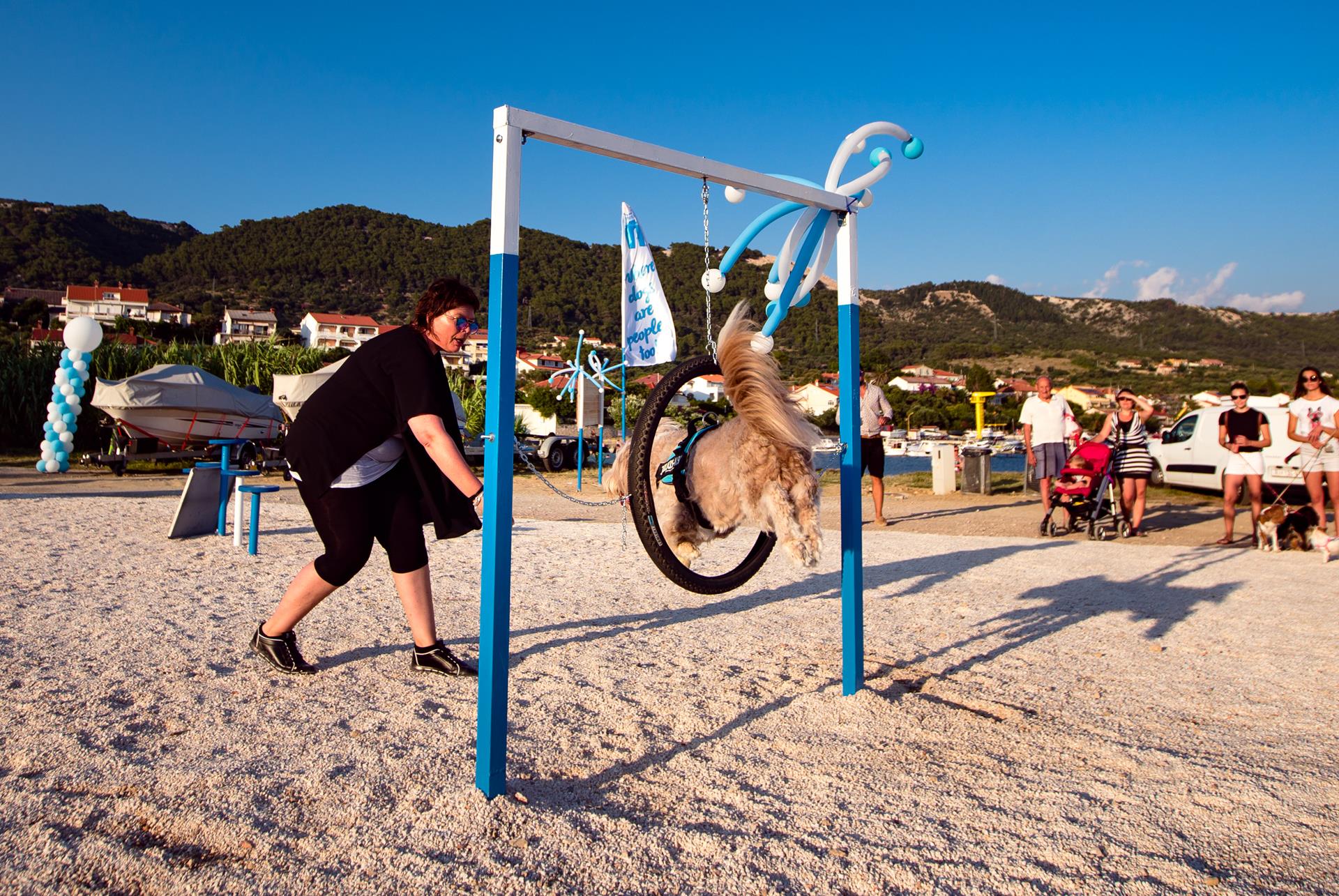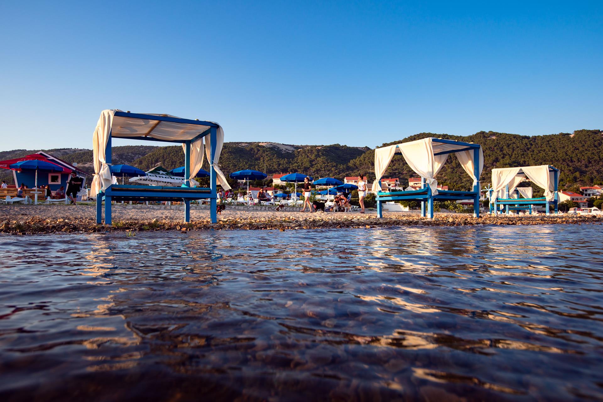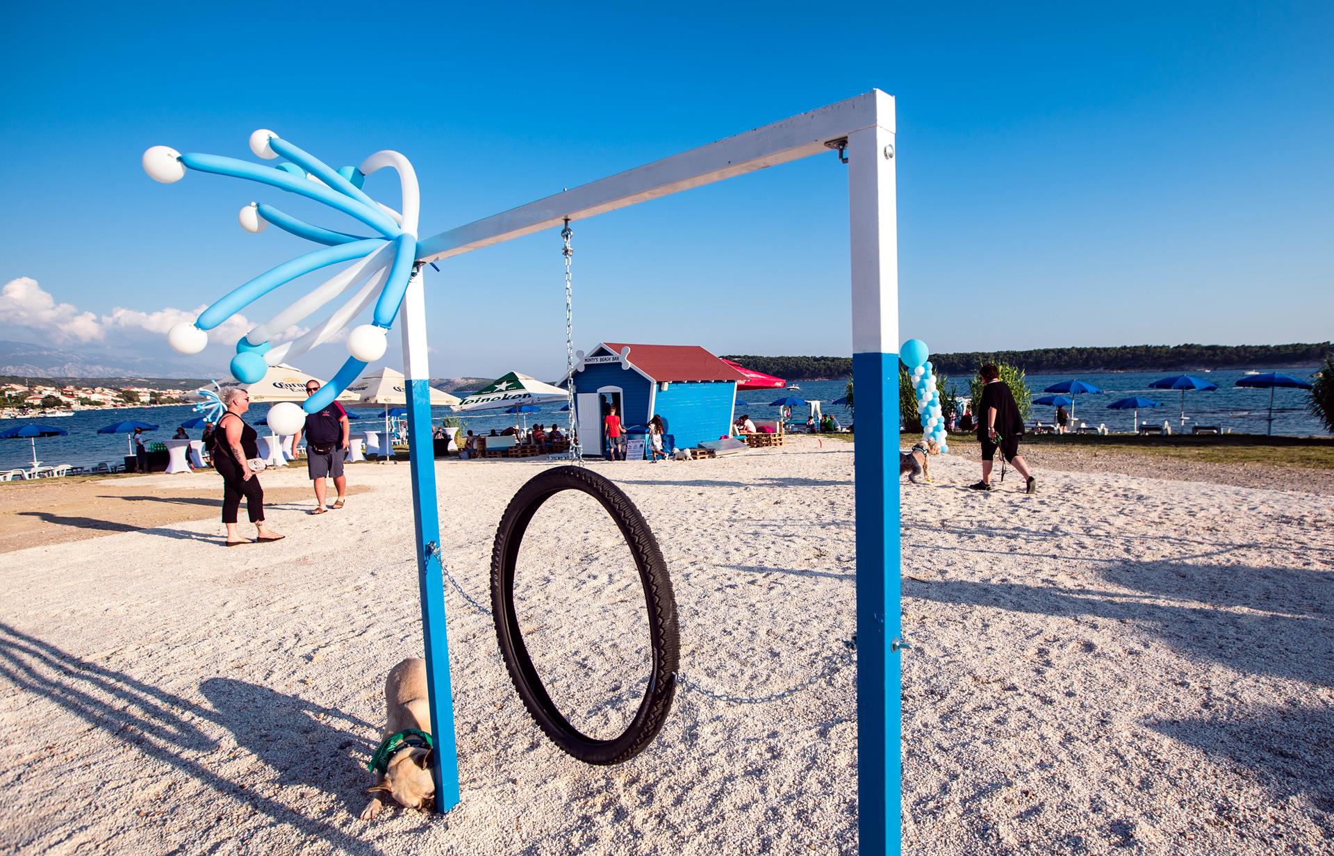 In the district of Artić situated in the Town of Banjol, you will find Monty’s Dog Beach & Bar, the first theme beach in Rab with a customised product and service range intended for dog owners and their pets. At the Monty's beach, the guests can enjoy all the amenities that can be found on landscaped beaches, including toilets, WIFI, changing cubicles, showers, parasols and deck chairs, as well as the catering service, in view of achieving the vision of spending five-star holidays with your dog. The four-legged guests of Monty’s Beach in Artić can enjoy a dog ice cream, beer, pizza, borrow dog toys, bowls or paw protection pads and after spending the day in swimming and sunbathing, before going home, they can have fun at the Monty’s dog training park.